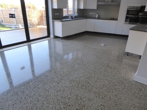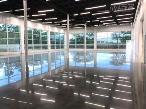 The mechanical polishing process effectively seals the concrete floor and makes it dense enough to be resistant to water, oil and other contaminants.
