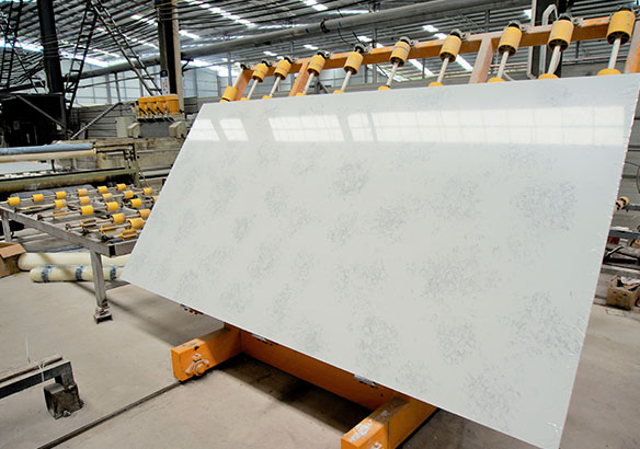 Our Current overseas PRODUCTION BASE is equipped with 16 automatic production lines (By computer automatic batching, mixing, distributing, pressing machines and splinttype curing furnace),4 automatic polishing lines by Italian and domestic, a set of Professional Countertop Fabricate System (By Italian processing center, several infrared bridge cutting machines and automatic edge grinding machines), and a production line of Italy SIMEC automatic standard tiles.